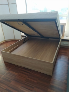 Voodil on ülestõstetav põhi ja pesukast.
