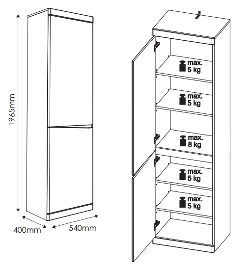 Kapil on 2 ust.Materjal: kvaliteetne ja vastupidav melamiinkattega laminaat + MDF.Värv: tamm San Remo.Toodetud: Poolas.Toode tarnitakse detailidena.Laius: 60 cm.Sügavus: 40 cm.Kõrgus: 196,5 cm.Tarneaeg: 4-8 nädalat.