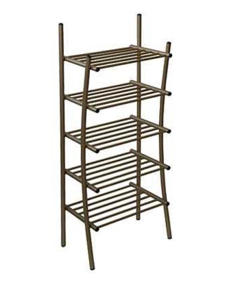 Metallist jalatsirestil on 5 riiulit.Viimistletud pulbervärviga.Laius: 43 cm.Sügavus: 28 cm.Kõrgus: 106 cm.Tarneaeg: kuni 3 nädalat.