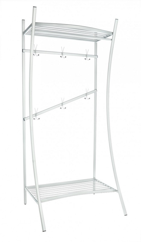 Metallist riidenagil on 6 paari riputuskonkse, riidepuutoru, mütsiriiul ja jalanõuderiiul.Viimistletud pulbervärviga.Laius: 84 cm.Sügavus: 60 cm.Kõrgus: 187 cm.Tarneaeg: kuni 3 nädalat.