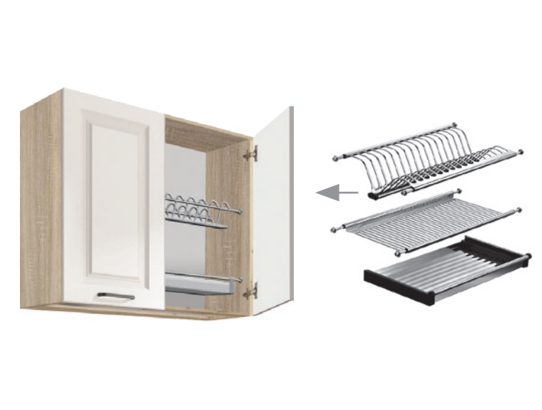 Kapil on 2 ust. Uste taga on nõuderest. Materjal: kvaliteetne laminaat + MDF. Esipinna värvivalik: matt valge; congo (hall). Korpuse värvivalik: sonoma; artisan; andersen. Käepidemed: metallist. Valmistatud: Poolas. Toode tarnitakse detailidena. Laius: 80 cm. Kõrgus: 72 cm. Sügavus: 32 cm. Tarneaeg: 4-8 nädalat.